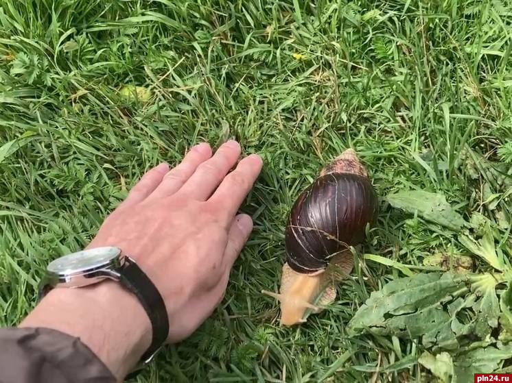 Пскович заметил улитку-ахатина в центре города. Фотографией мужчина поделился с «МК в Пскове».