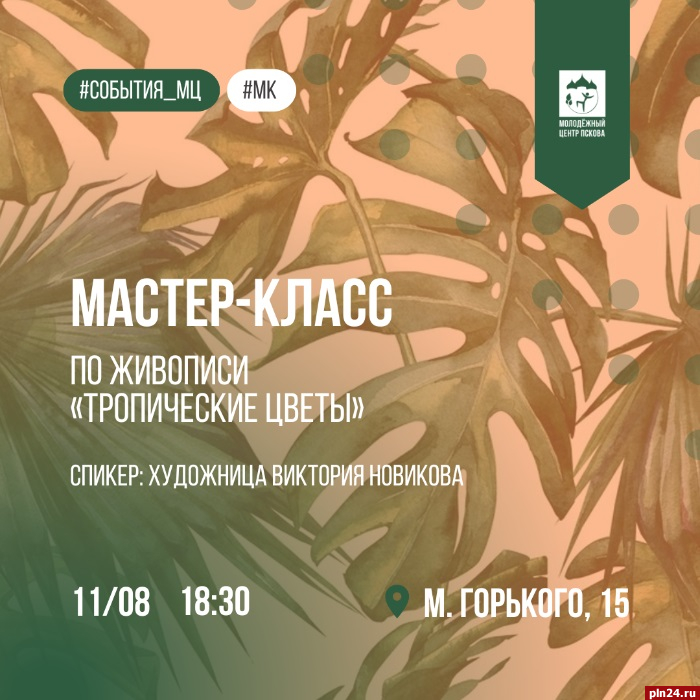 Бесплатный мастер-класс по живописи «Тропические цветы» состоится в Пскове 11 августа. Об этом Псковской Ленте Новостей сообщили в Псковском городском молодежном центре.