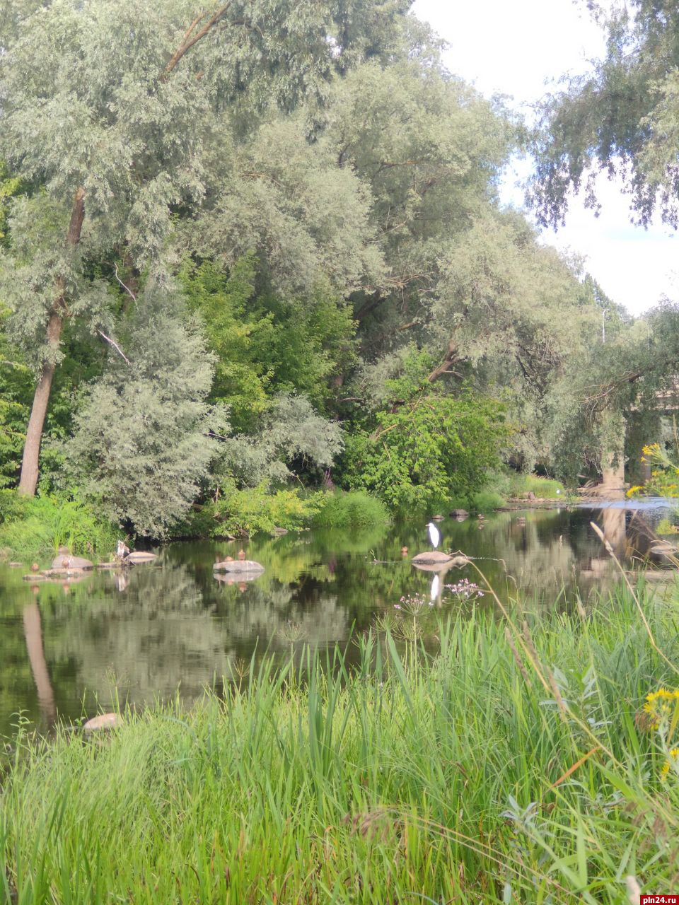 Белых цапель заметили на реке Пскове в Пскове. Снимки в редакцию Псковской Ленты Новостей 6 августа прислал читатель.