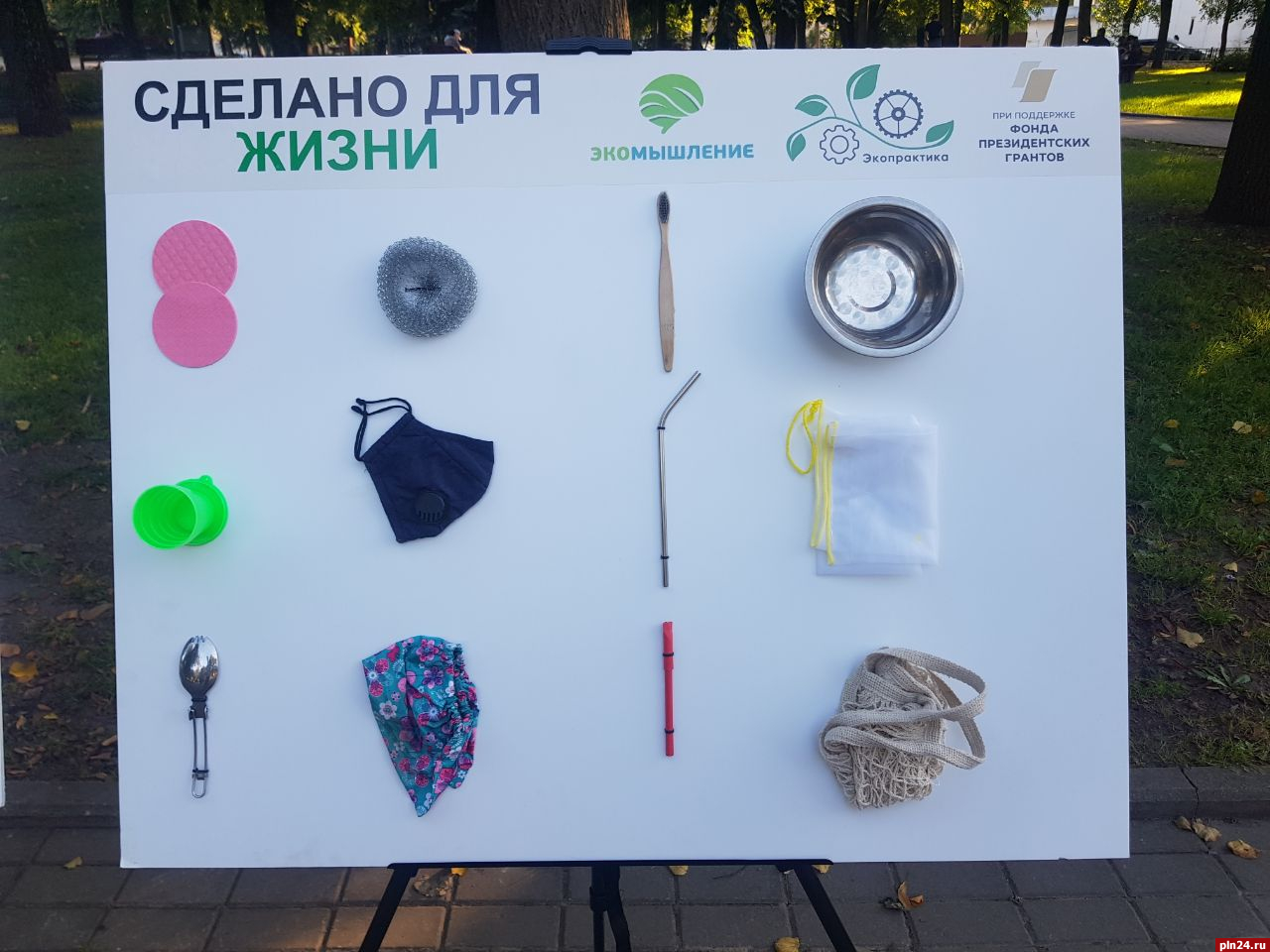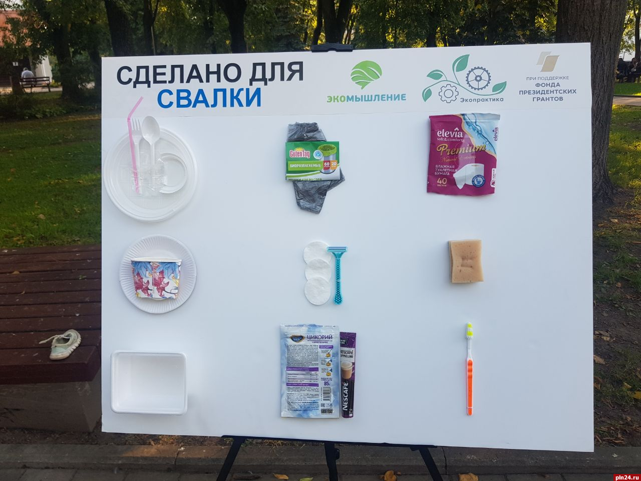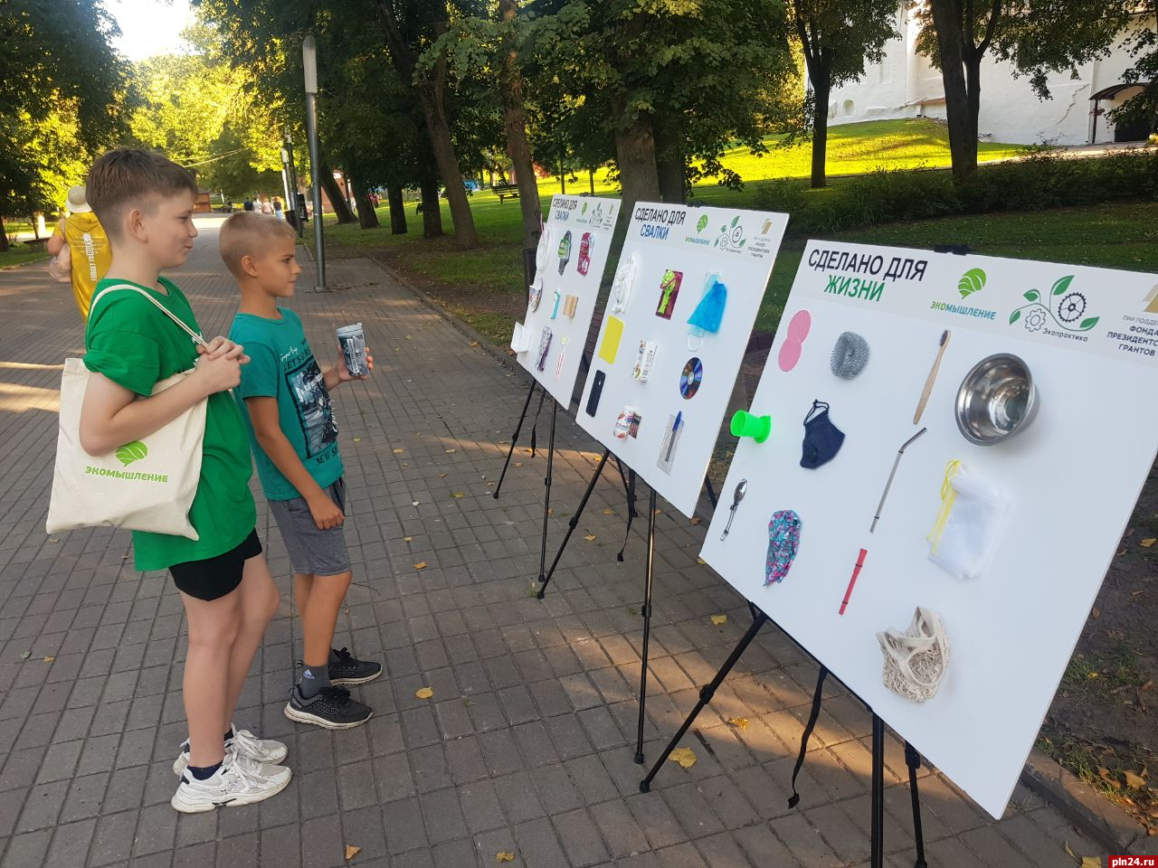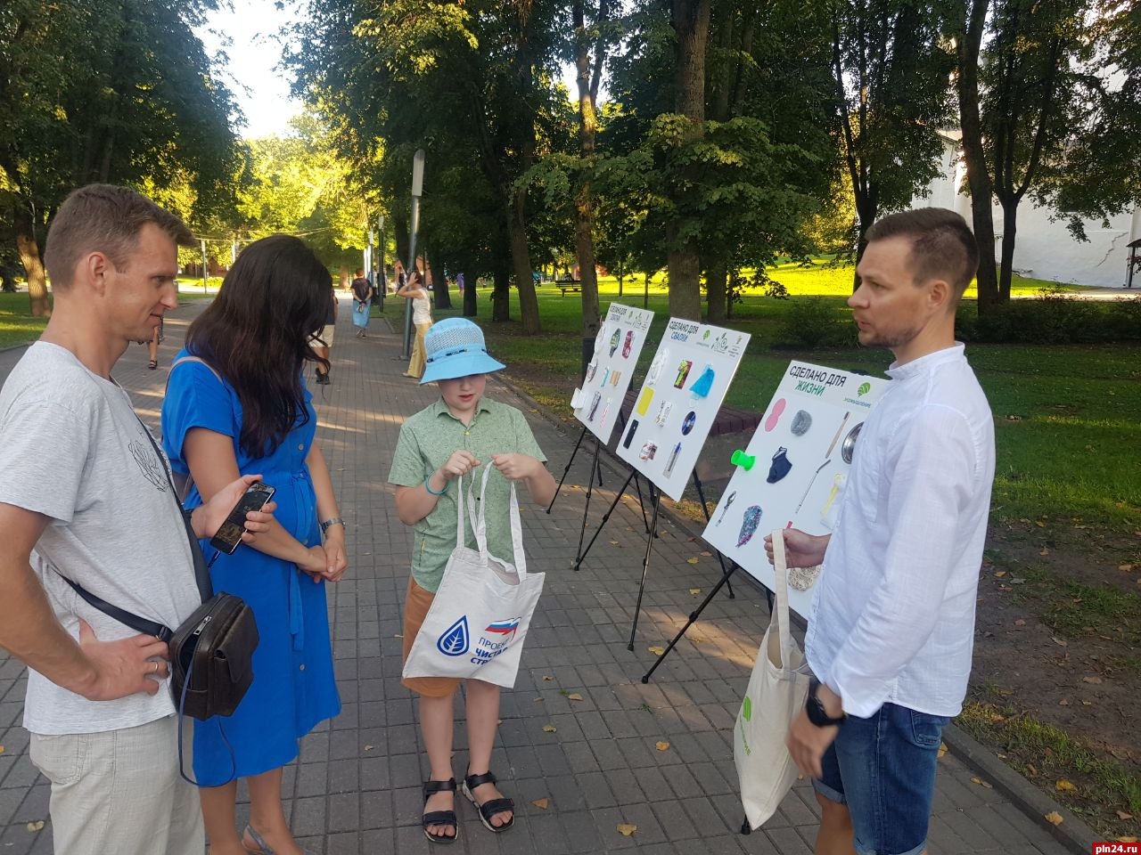 Акция «Используй повторно» прошла в Детском парке 15 августа. Активисты проекта «Экомышление» спрашивали у прохожих, что они видят на стендах и от чего смогли бы отказаться в повседневной жизни, сообщил Псковской Ленте Новостей член экспертного совета Российского экологического движения Сергей Елизаров.