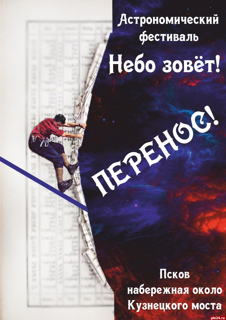Астрономический фестиваль «Небо зовет» в Пскове перенесли из-за плохой погоды на 26 августа. Об этом сообщается в группе Псковского планетария в социальной сети «ВКонтакте».