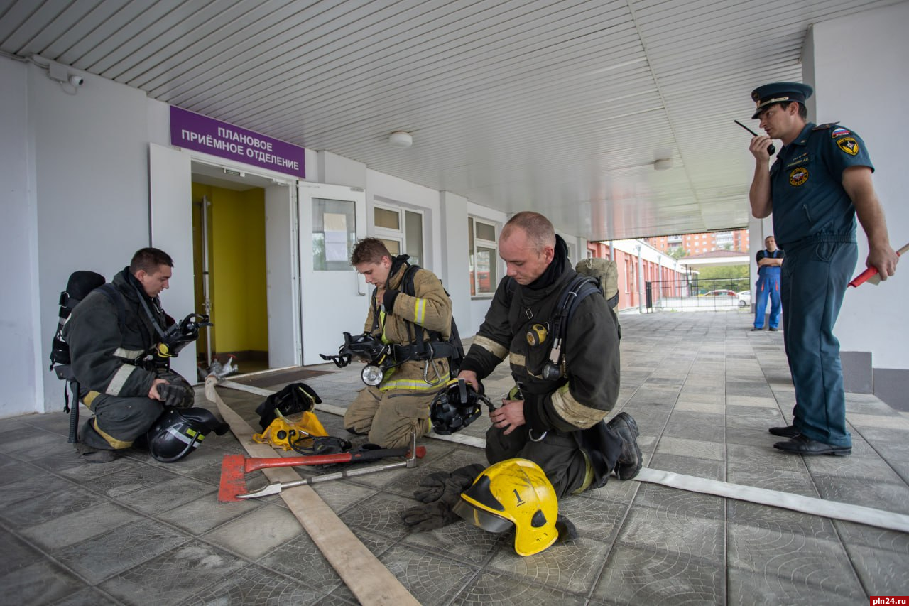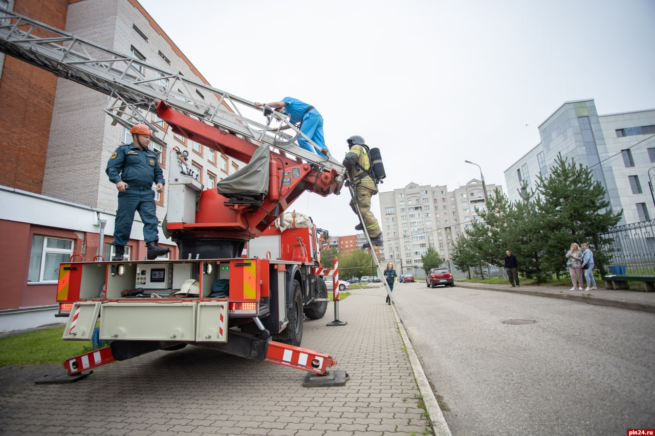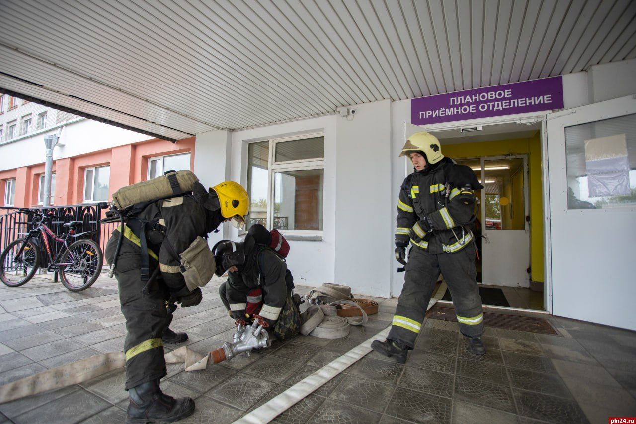 Тренировочные занятия по решению пожарно-тактических задач на социально-значимом объекте – детской областной больнице в Пскове – провели сотрудники МЧС сегодня, 24 августа, передает корреспондент Псковской Ленты Новостей.