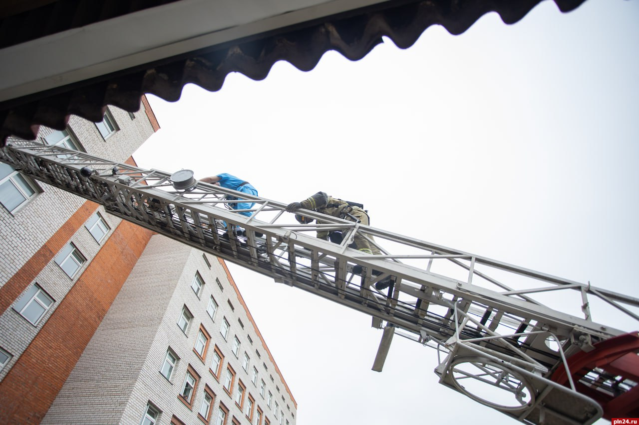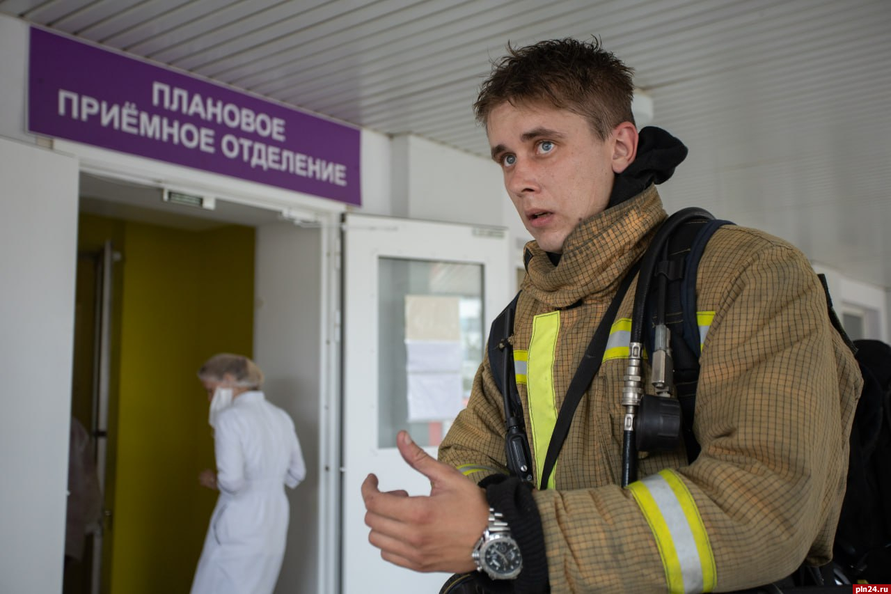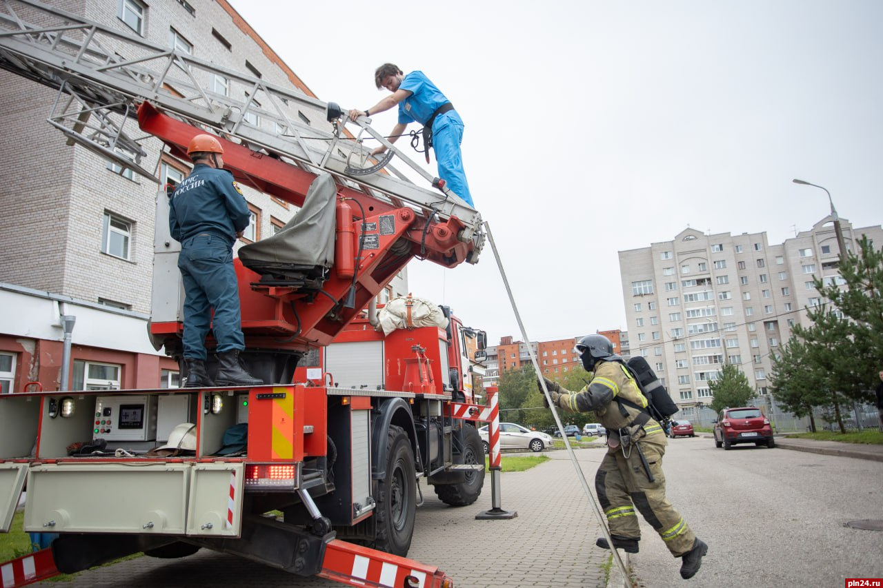 Тренировочные занятия по решению пожарно-тактических задач на социально-значимом объекте – детской областной больнице в Пскове – провели сотрудники МЧС сегодня, 24 августа, передает корреспондент Псковской Ленты Новостей.