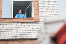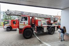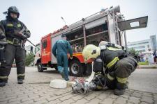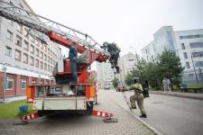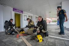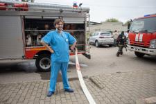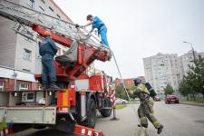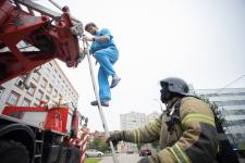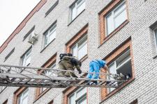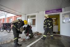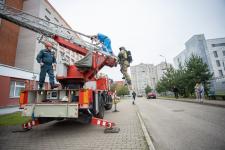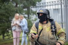 Слаженными действиями сотрудники пожарно-спасательных подразделений успешно потушили условный пожар и эвакуировали пострадавших. Эвакуация из окна проводилась с помощью автолестницы.