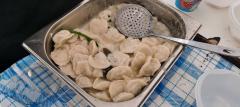 Специально для великолучан и гостей города представили вкуснейшие угощения: окрошка по-великолукски, пельмени «На Ловати», пироги «Великие», уха «Царская».