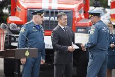 Так, спасатели получили 13 единиц спецтехники. Среди них – приобретенные за счет средств федерального бюджета пожарные автоцистерны на базе «Урала», автолестница с высотой подъема до 30 метров, грузовые и легковые автомобили, скоростной патрульный катер и аэролодка.