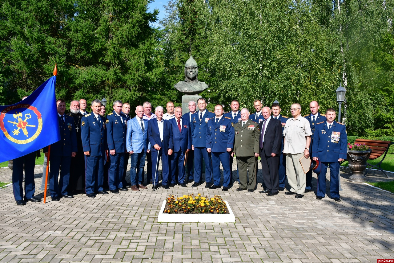 Торжественная часть праздника началась с выноса знамени УФСИН России по Псковской области. От имени руководства УИС области всех сотрудников и ветеранов с очередной годовщиной со дня образования регионального пенитенциарного ведомства поздравил начальник управления Алексей Емельянов. Он поблагодарил личный состав за нелегкий ежедневный труд, особо отметил деятельность ветеранской организации в деле служения Отечеству и патриотическом воспитании молодого поколения.
