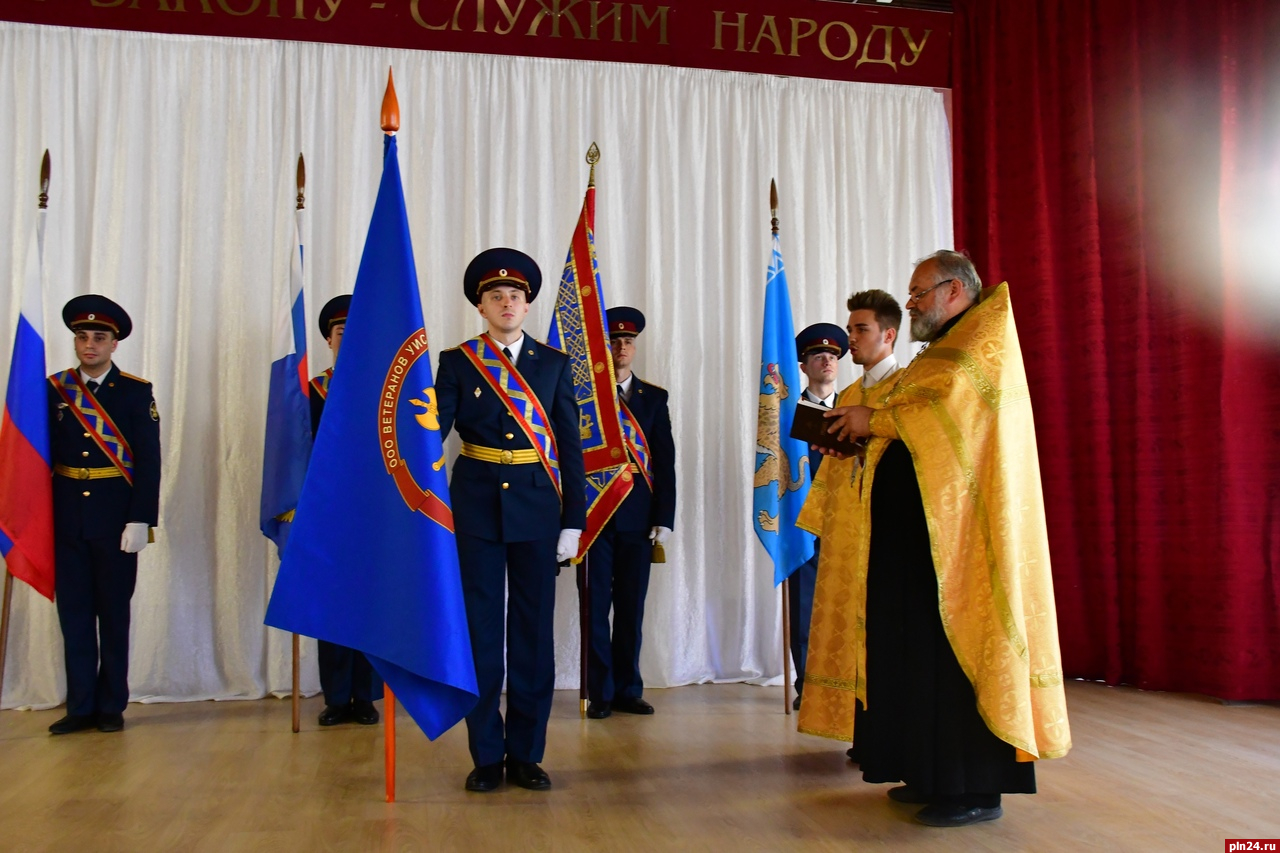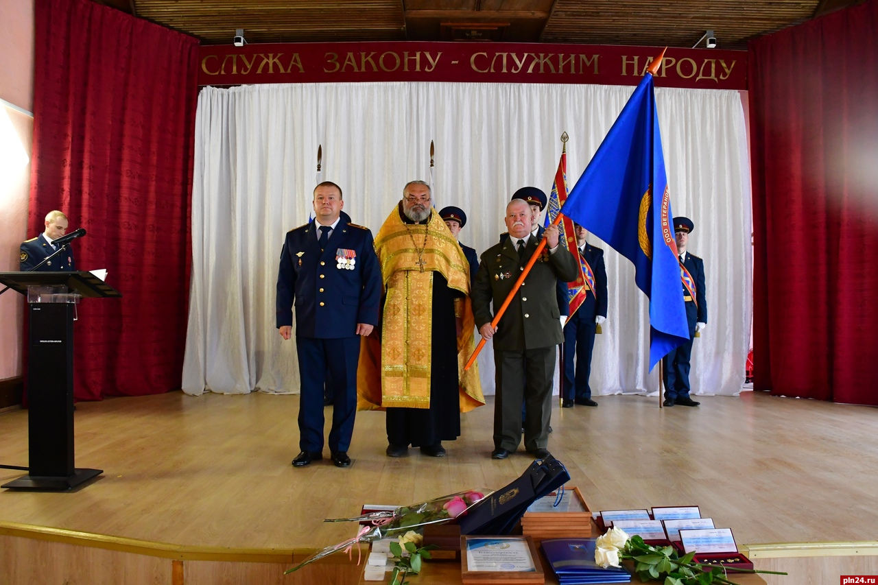 Помощник начальника управления по организации работы с верующими протоиерей Михаил Федоров совершил чин освящения знамени ветеранской организации, после чего начальник УФСИН вручил его председателю регионального отделения ООО ветеранов УИС по Псковской области Владимиру Михайлову, который в ответном слове выразил уверенность, что оно станет символом единства ветеранского движения и ориентиром для новых достижений, рассказали в ведомстве.