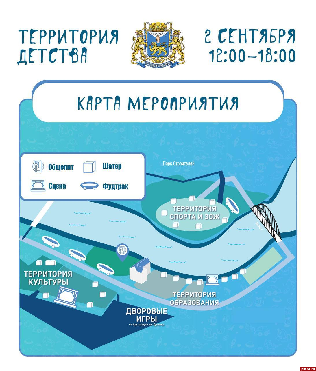 «Изучайте схему и расписание, приходите с детьми в Финский парк и парк Строителей с 12:00 до 18:00 и выбирайте чем занять ребенка вне школы!» – обратился к псковичам Борис Елкин.