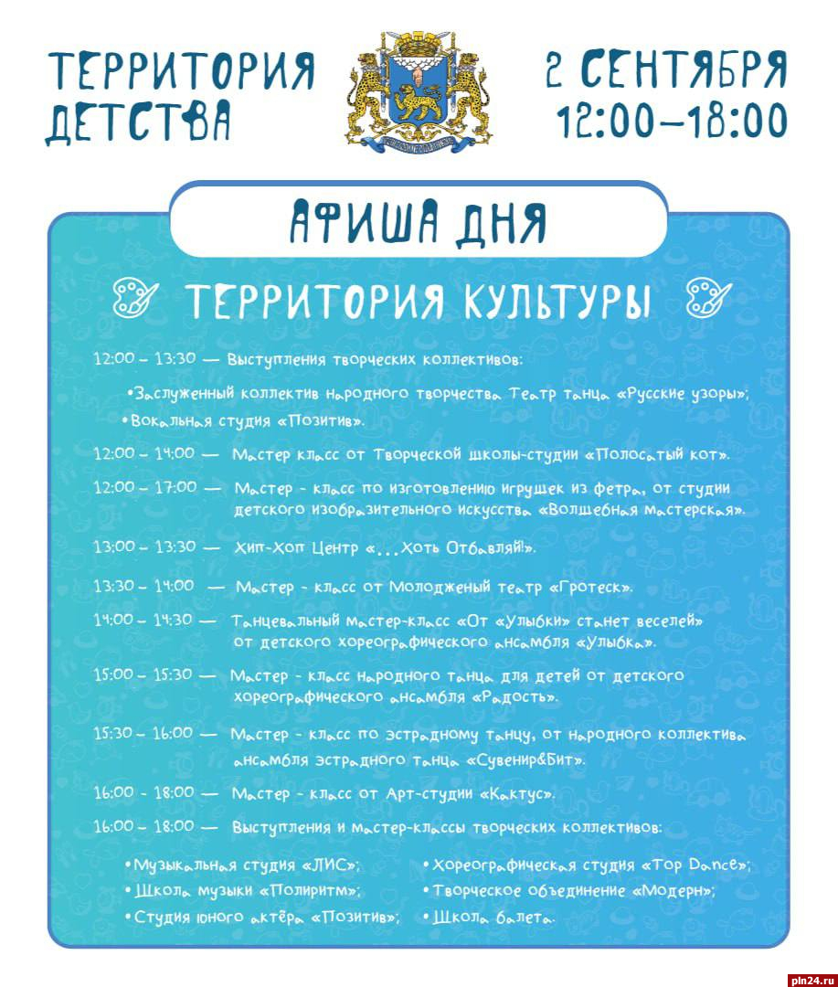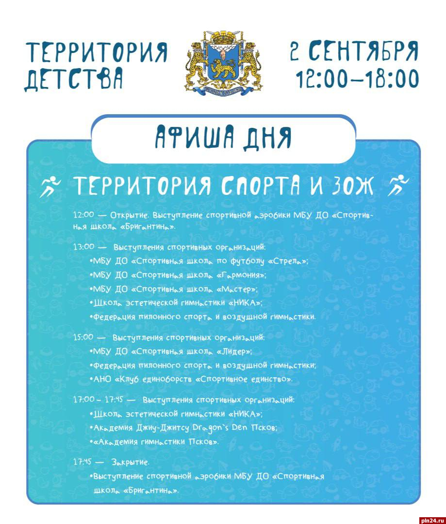 Более 50 организаций спорта, образования и культуры станут участниками и партнерами фестиваля дополнительного образования «Территория детства» в Пскове 2 сентября. Об этом сообщил глава города Борис Елкин в своём Telegram-канале.