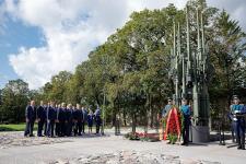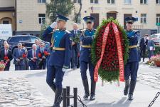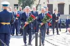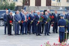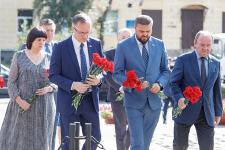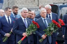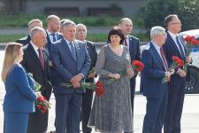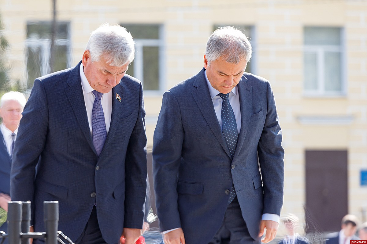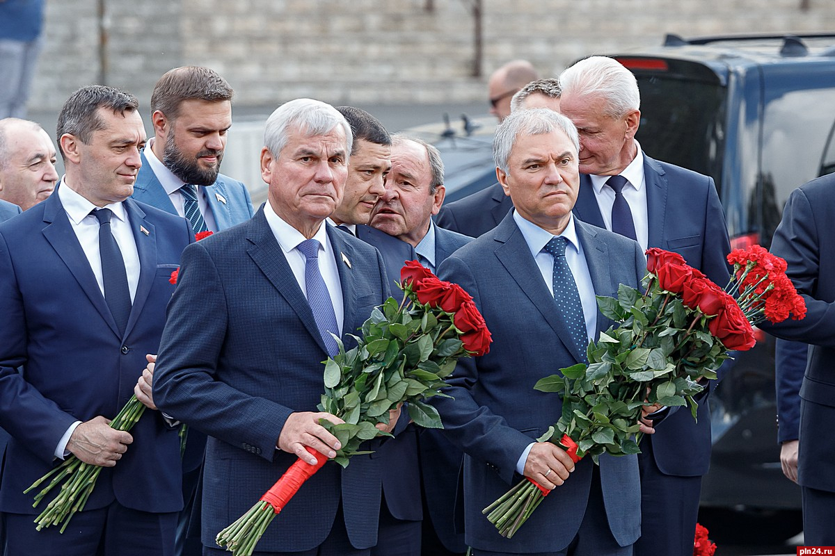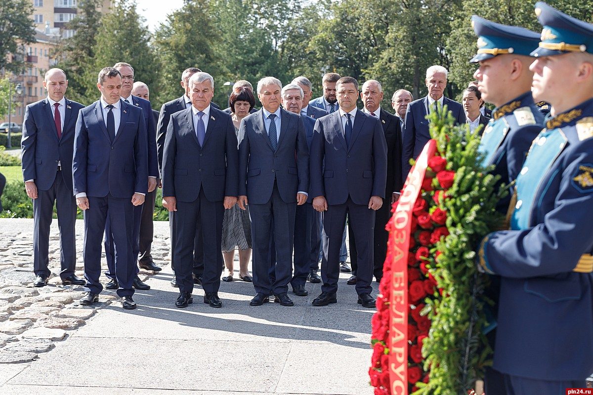 В возложении цветов приняли участие председатель Государственной Думы Федерального Собрания Российской Федерации, председатель Парламентского собрания Союза Белоруссии и России Вячеслав Володин, председатель Палаты представителей Национального собрания Республики Беларусь, его первый заместитель Владимир Андрейченко, представители Парламентского собрания, руководители ряда российских и белорусских министерств и ведомств, а также другие официальные лица.