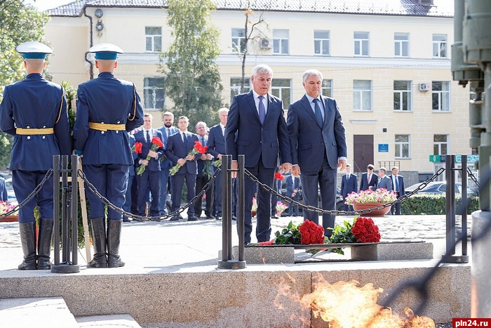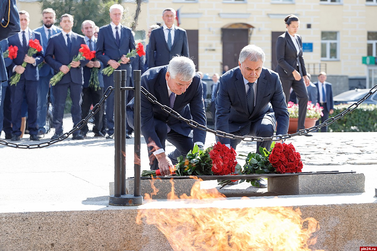 Цветы к Могиле Неизвестного солдата в Пскове сегодня, 4 сентября, возложили члены Совета Парламентского собрания Союза Белоруссии и России, передает корреспондент Псковской Ленты Новостей.