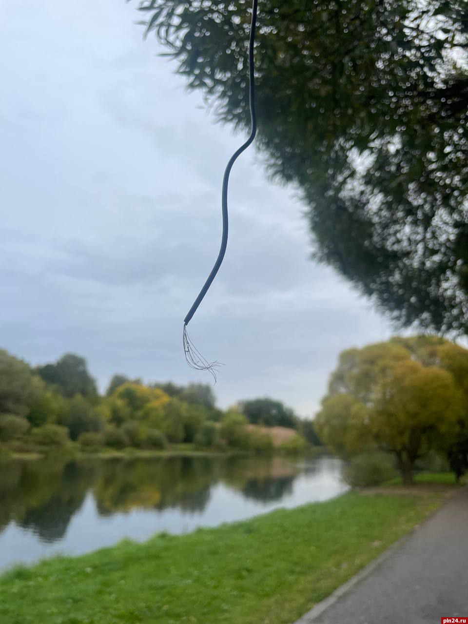 В Финском парке в Пскове, к большому сожалению, оборвана гирлянда на деревьях.