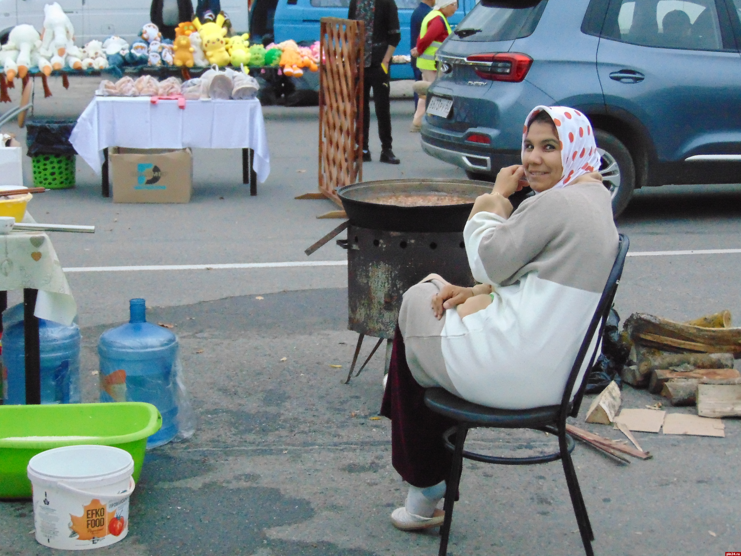 Впервые на центральной площади варился плов. На ярмарке предлагают промышленные товары. Обширный товарный ряд предлагают белорусские торговцы.