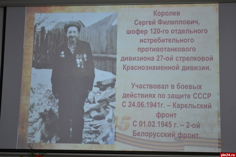 В торжественной обстановке уполномоченный по правам человека в Псковской области Дмитрий Шахов вместе со своими коллегами из Владимирской области Людмилой Романовой и Нижегородской области Оксаной Кислициной поздравили членов семьи с возвращением семейной реликвии, боевой награды, которой был удостоен Сергей Королёв, а также вручили памятные подарки. Дмитрий Шахов передал орден Славы III степени, которым был удостоен Сергей Королёв, его дочери Клавдии Сезёмовой на вечное хранение и для передачи будущим поколениям и потомкам ветерана Великой Отечественной войны.