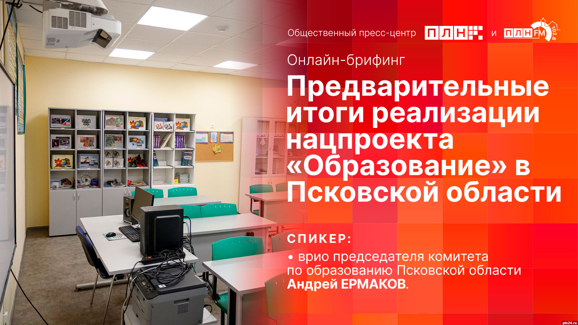 Онлайн-брифинг с участием временно исполняющего обязанности председателя комитета по образованию Псковской области Андрея Ермакова пройдет сегодня, 23 ноября, в объединенном пресс-центре Псковской Ленты Новостей и радиостанции «ПЛН FM».