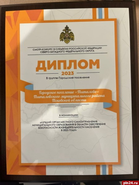Городское поселение Пыталово в Псковской области награждено дипломом смотра-конкурса в субъектах РФ Северо-Западного федерального округа в номинации «Лучший ОМСУ муниципального образования в области обеспечения безопасности жизнедеятельности населения в 2023 году». Об этом Псковской Ленте Новостей сообщили в пресс-службе правительства региона.
