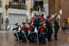 Торжественная церемония традиционно прошла в Зале Славы. Военнослужащим показали уникальную свето-звуковую инсталляцию «Дорога к Победе» - на куполе величественного зала за 10 минут разворачивались события Великой Отечественной войны. А затем после выноса знамени полка и Государственного флага Российской Федерации начался ритуал принятия Военной присяги. Новобранцы, выходя из строя, по очереди зачитывали клятву на верность Отечеству.