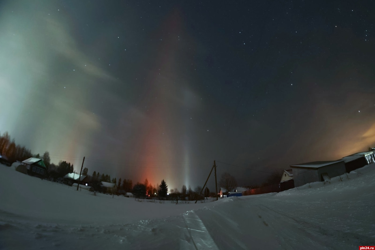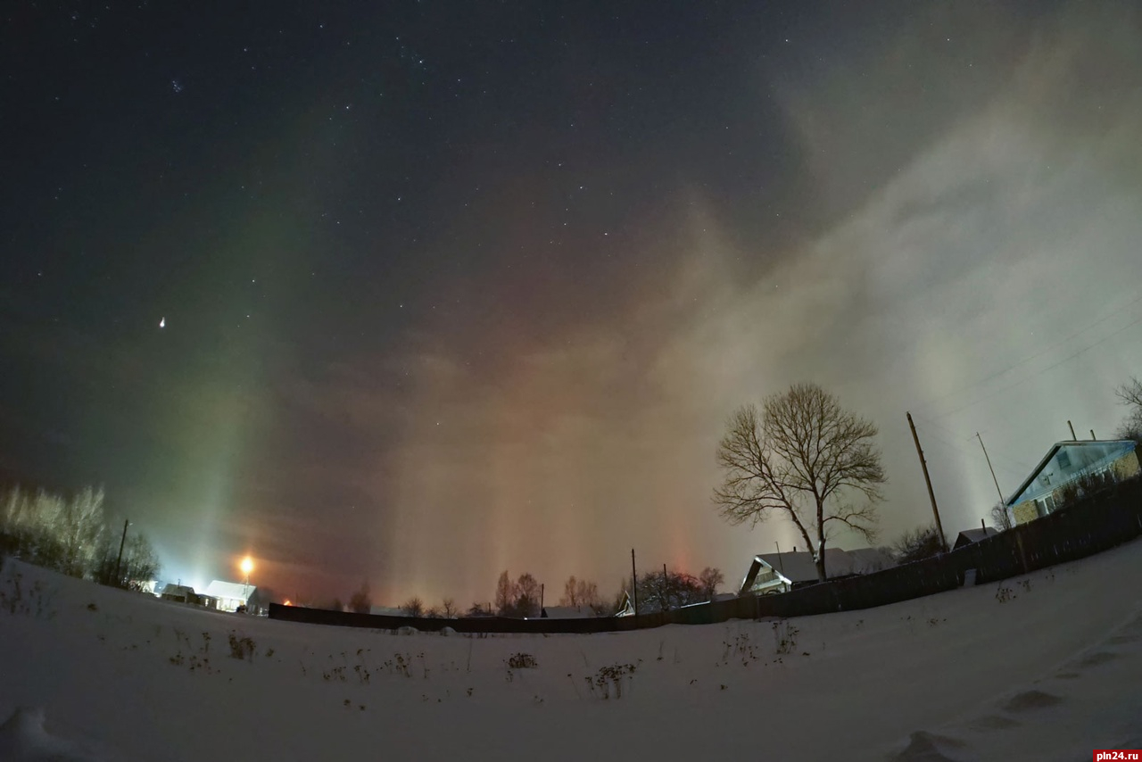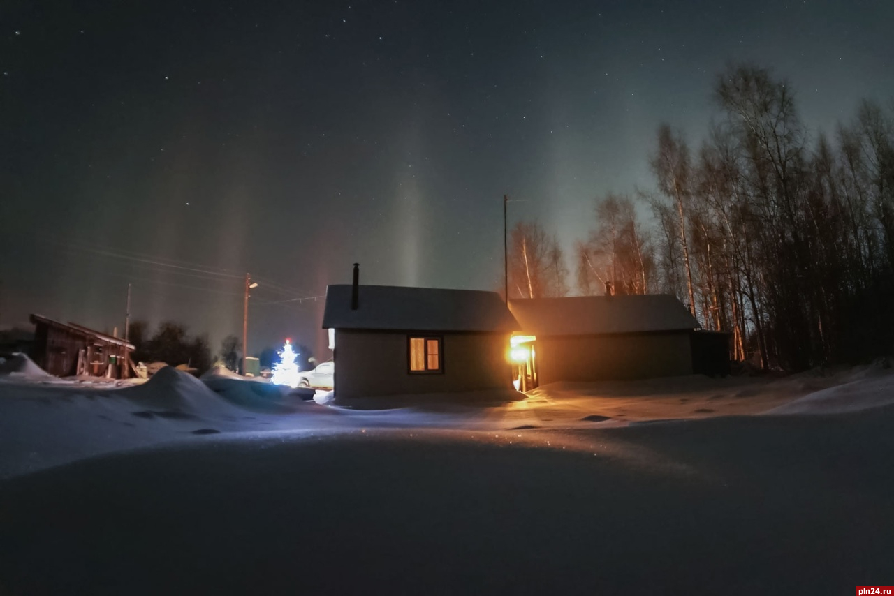 Световые столбы наблюдали в селе Серёдка Псковского района в ночь с 16 на 17 января. Об этом сообщила местная жительница на своей странице в социальной сети «ВКонтакте».