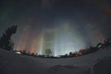Согласно открытым источникам, световые полосы (световые столбы) часто появляются на небе зимой в морозную погоду. Иногда их путают с северным сиянием. Явление возникает из-за преломления и отражения света в ледяных кристаллах, содержащихся в воздухе. Они обычно наблюдаются в холодное время года, когда воздух насыщен ледяными кристаллами, и представляют собой вертикальные полосы света, которые поднимаются от горизонта и могут достигать высоты в несколько сотен метров.