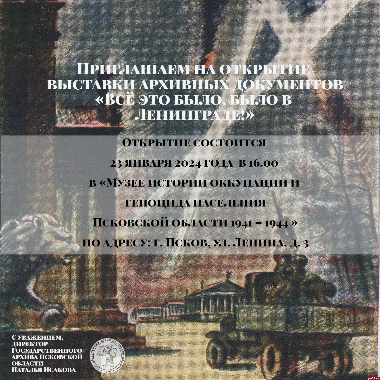 Организатором выставки выступил Государственный архив Псковской области.