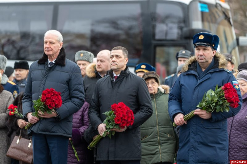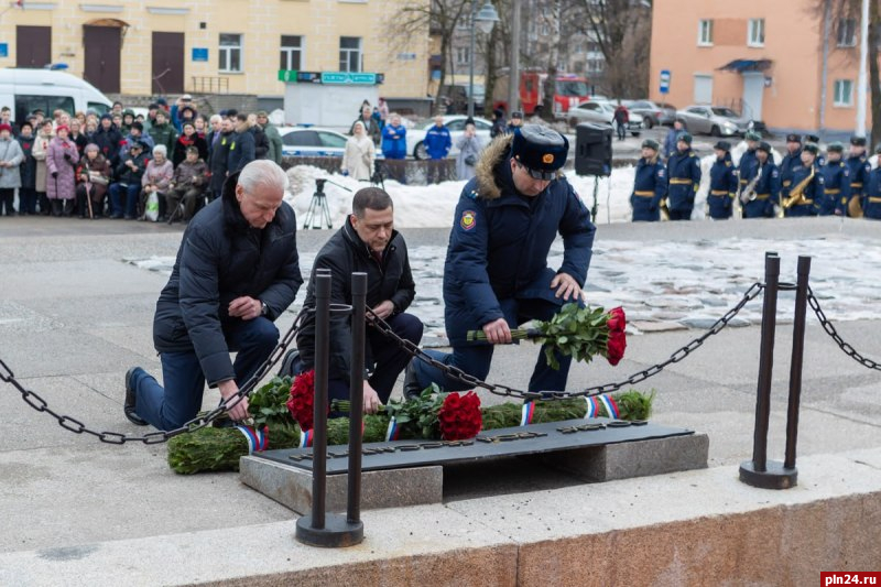 Цветы к подножию монумента вместе с главой региона возложили председатель Псковского областного Собрания депутатов Александр Котов, представители муниципальной власти, военнослужащие Псковского гарнизона, блокадники и жители города.