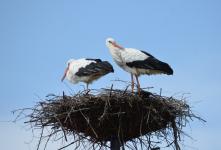 Энергетики и неравнодушные люди помогли Гусару, установив новый столб с основой для гнезда, который птица приняла и использовала. Пара диких аистов осела рядом с центром, где они чувствовали себя хозяевами территории.