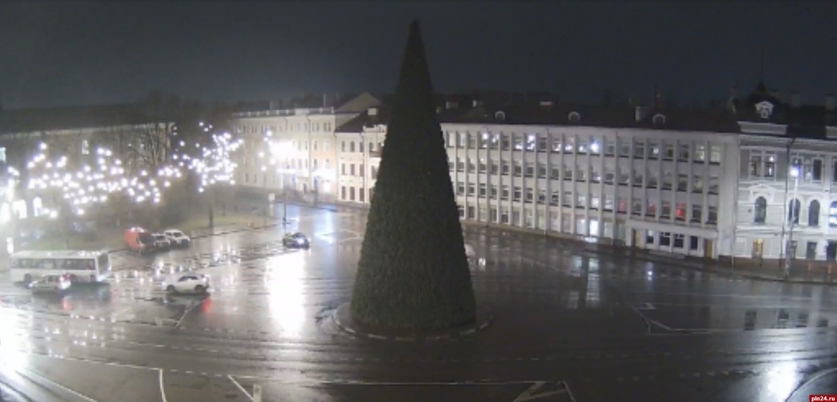 Фотофакт: В Пскове установили главную новогоднюю елку
