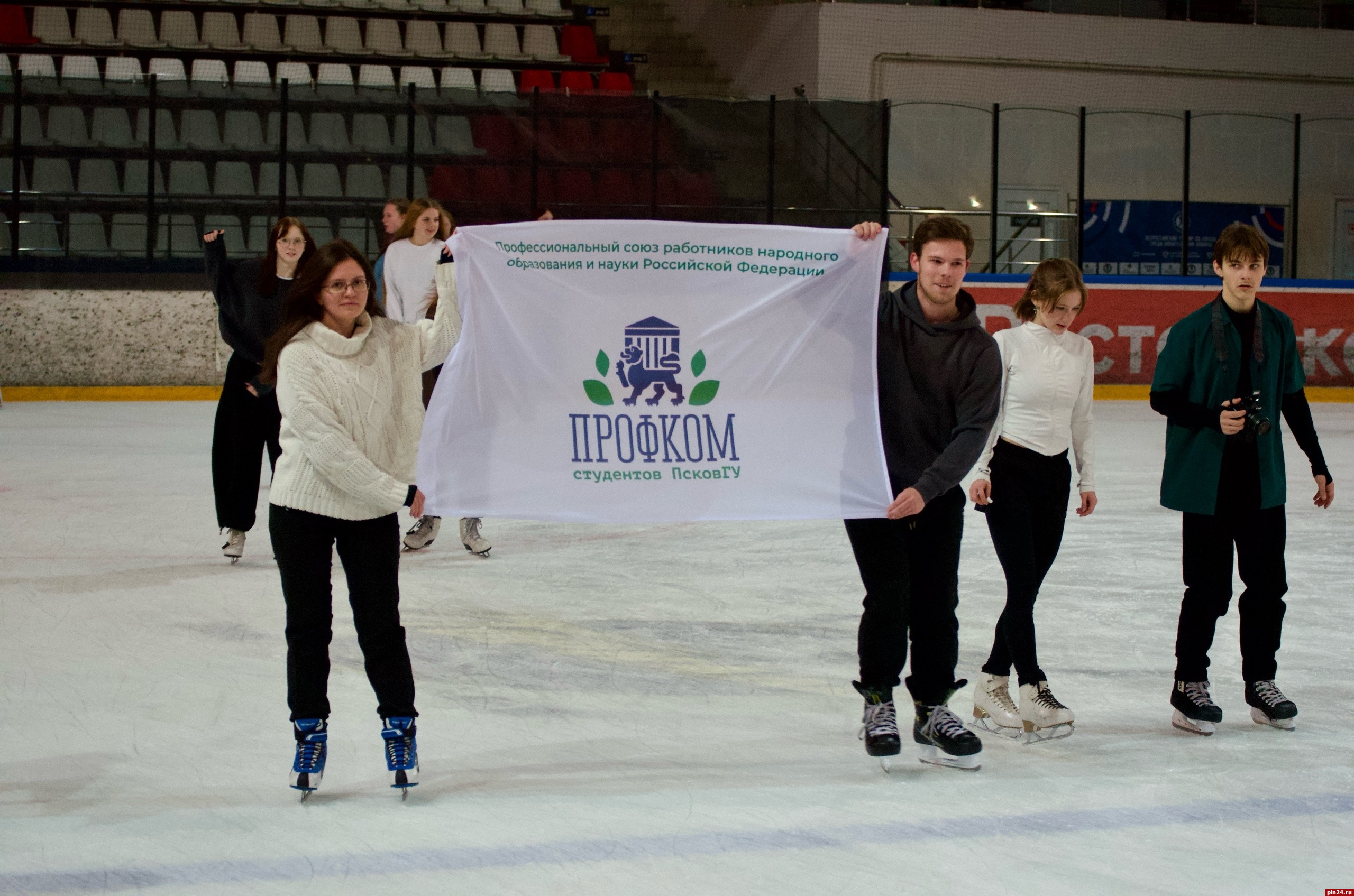 Профком студентов ПсковГУ организовал и провел бесплатное массовое катание на льду в Ледовом дворце, собравшее десятки студентов.