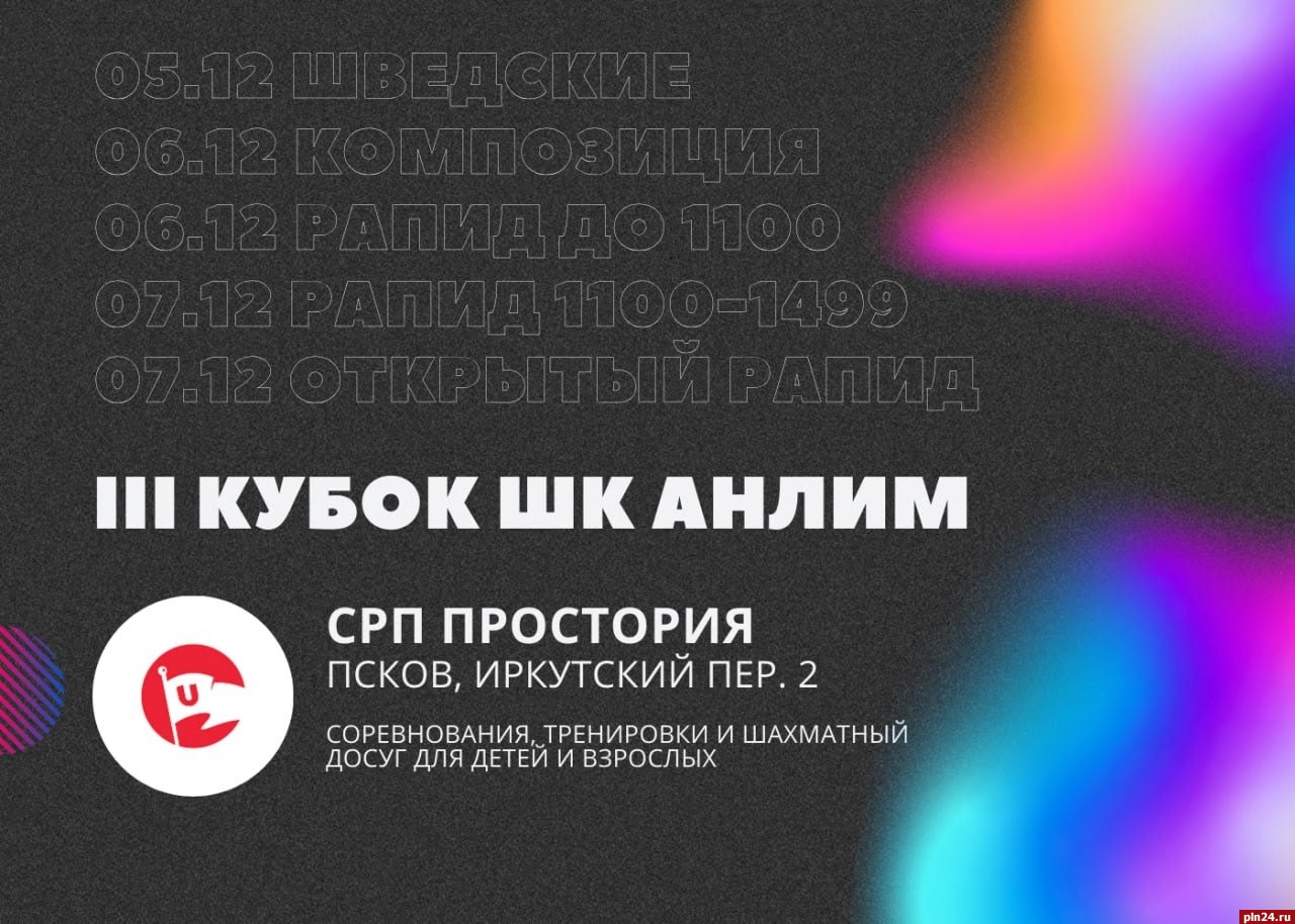 III Открытый Кубок Шахматного Клуба «Анлим» пройдет с 5 по 7 декабря в Пскове, сообщила организация в своей группе сети «ВКонтакте».