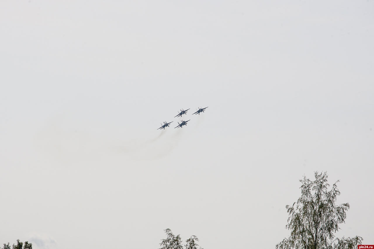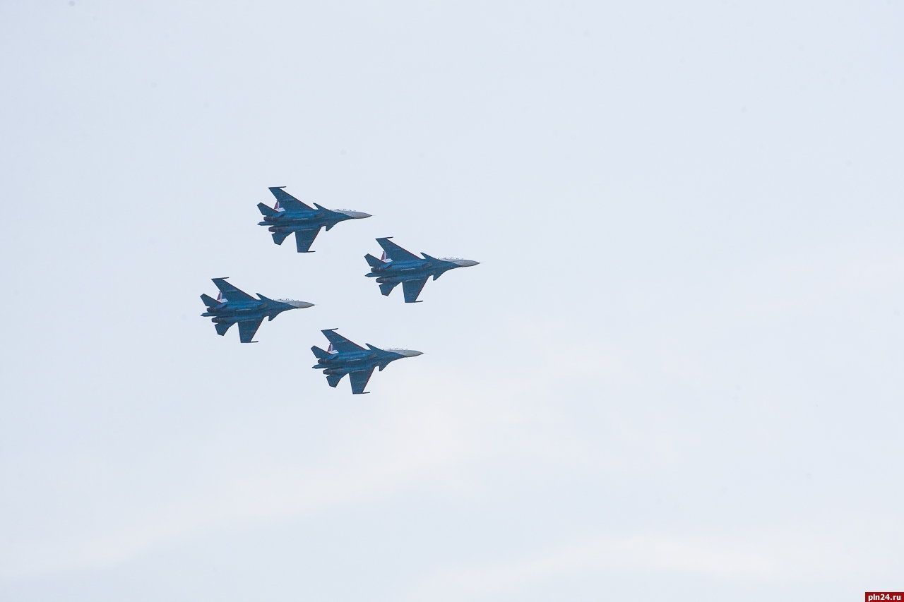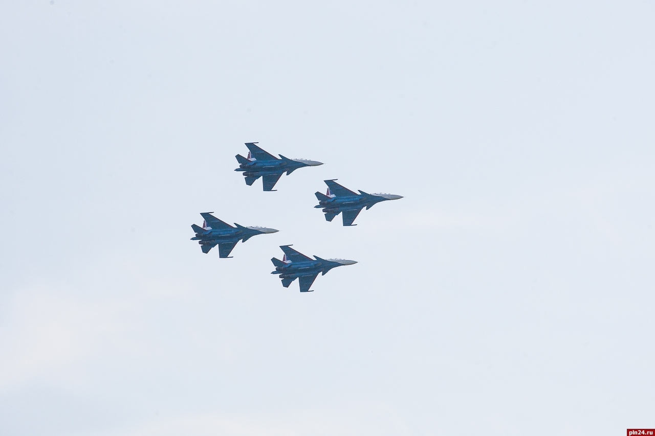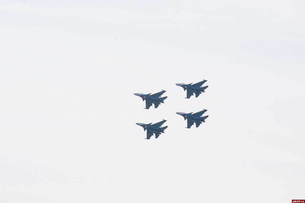 Как сообщает корреспондент Псковской Ленты Новостей, в Псков прибыли 11 летчиков, 5 истребителей Су-30 СМ. Уже сегодня, 31 августа, псковичи могут наблюдать тренировочные полеты военной техники над городом. Начальник центра показа авиационной техники полковник Андрей Алексеев рассказал журналистам, что пилотажная группа «Русские Витязи» будет выступать в Пскове впервые и для них это большая честь - выступать в таком древнем русском городе.