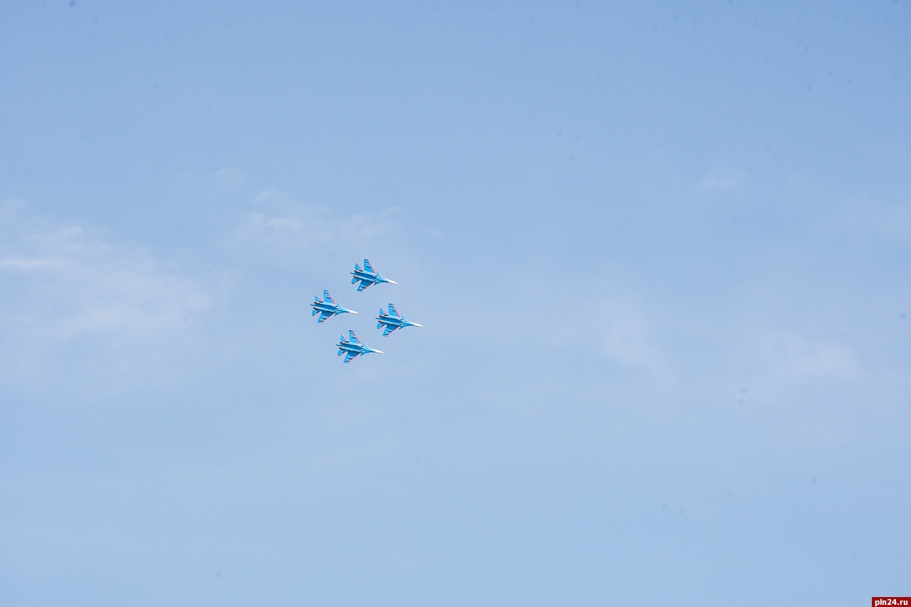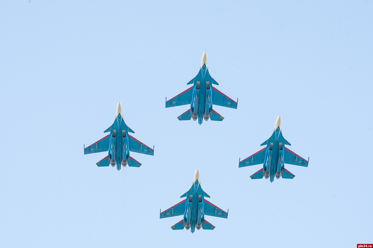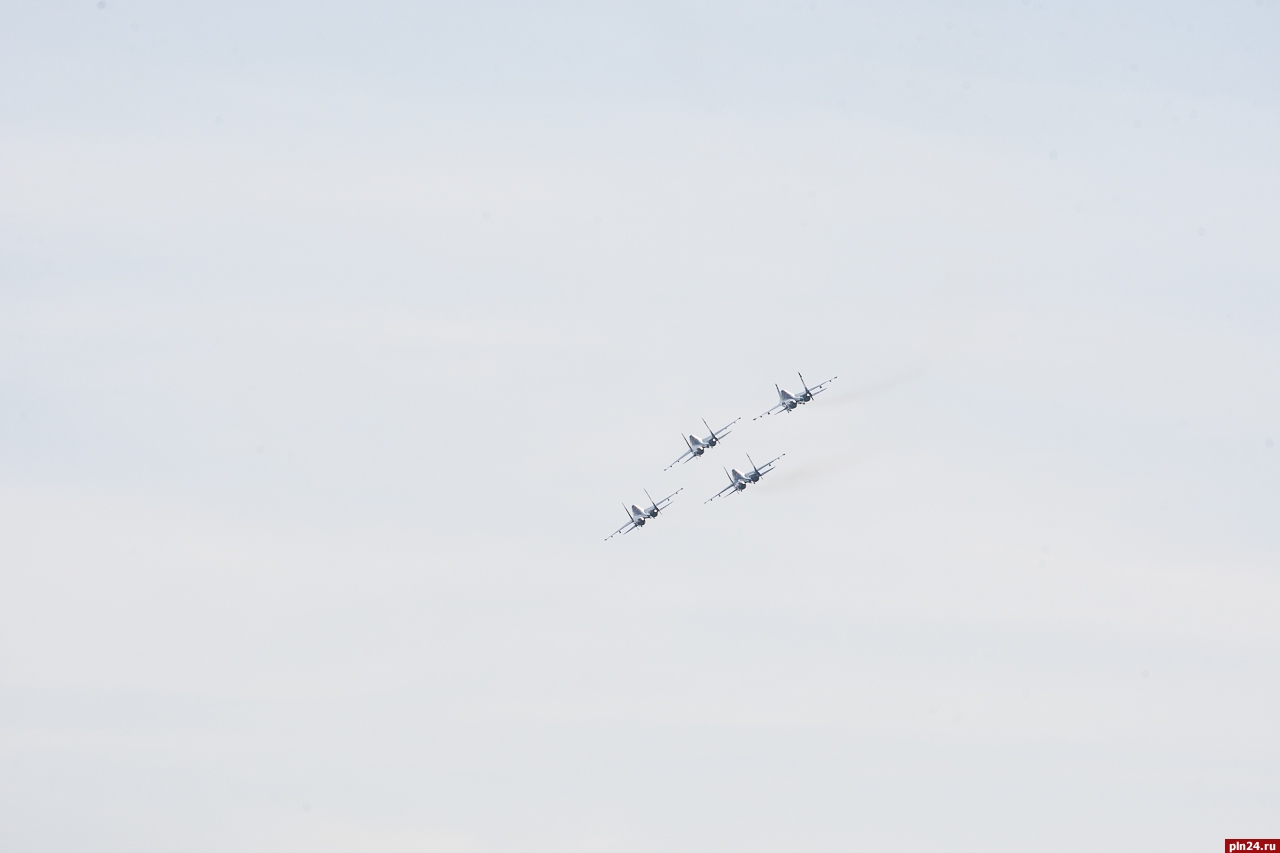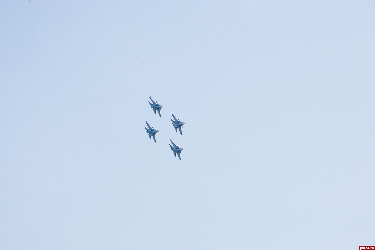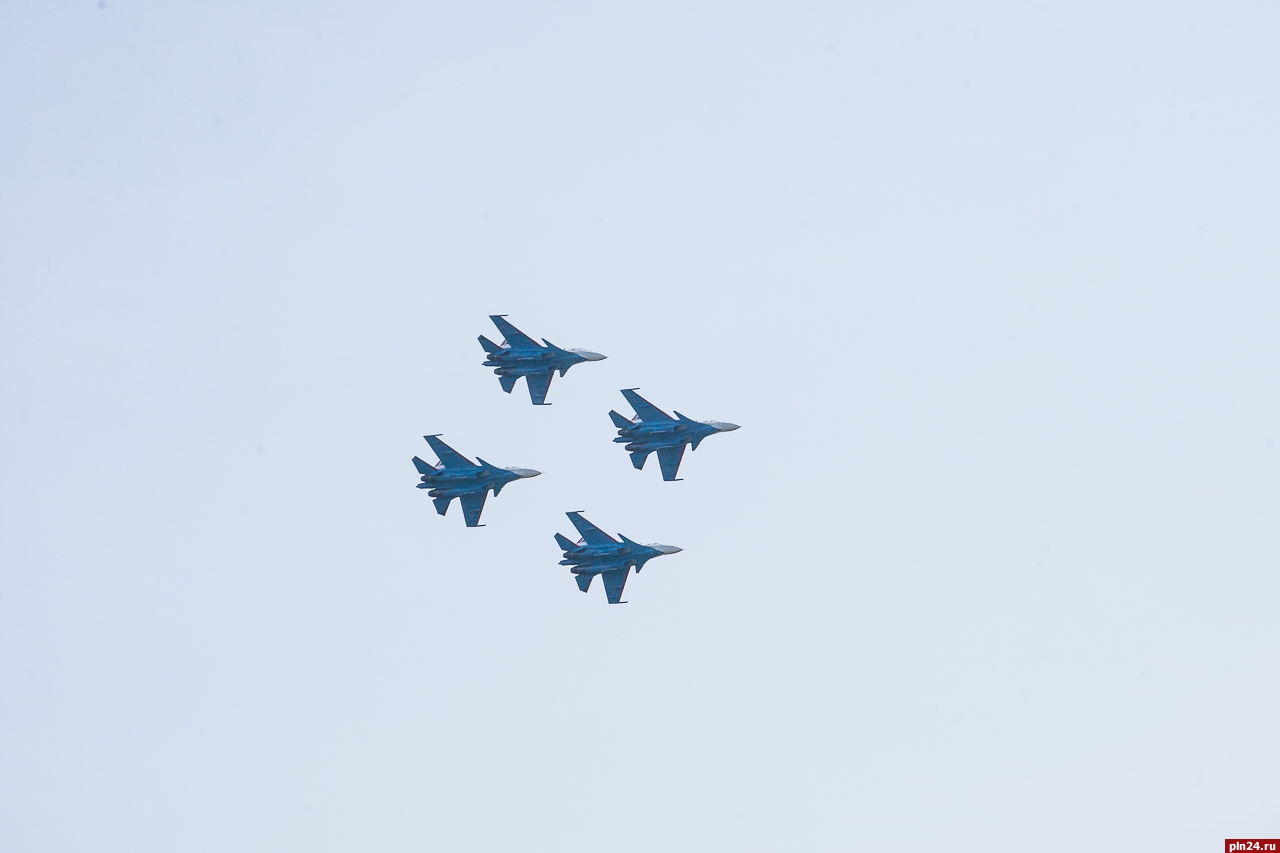 Как сообщает корреспондент Псковской Ленты Новостей, в Псков прибыли 11 летчиков, 5 истребителей Су-30 СМ. Уже сегодня, 31 августа, псковичи могут наблюдать тренировочные полеты военной техники над городом. Начальник центра показа авиационной техники полковник Андрей Алексеев рассказал журналистам, что пилотажная группа «Русские Витязи» будет выступать в Пскове впервые и для них это большая честь - выступать в таком древнем русском городе.