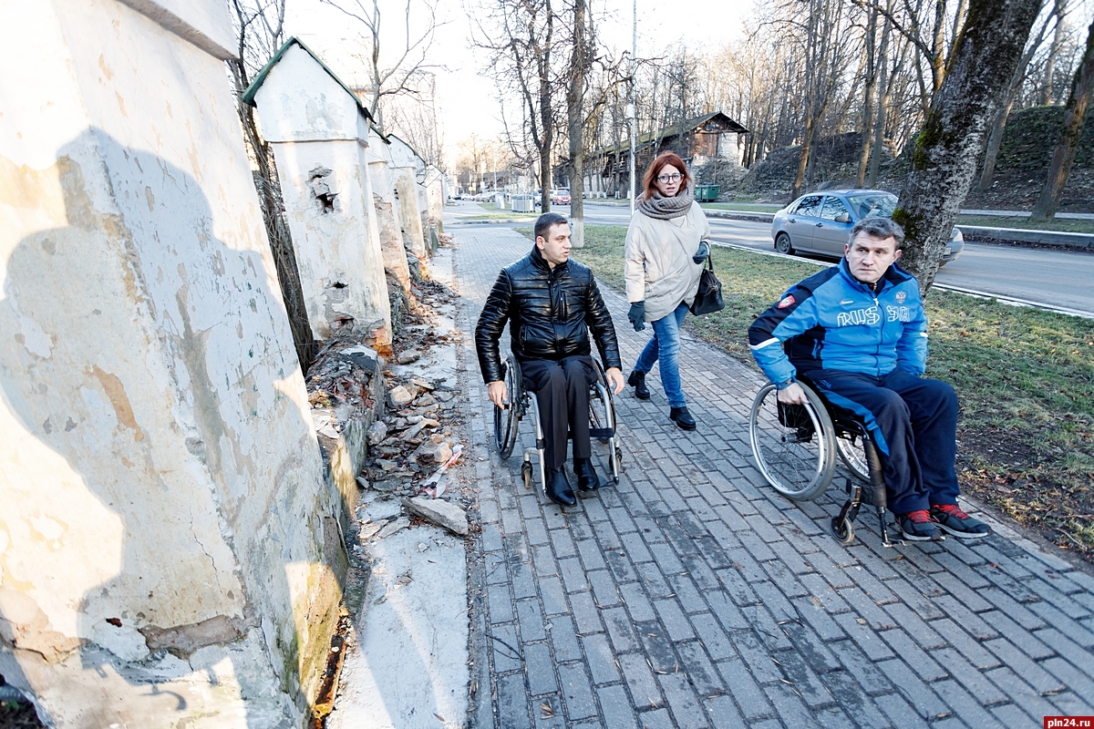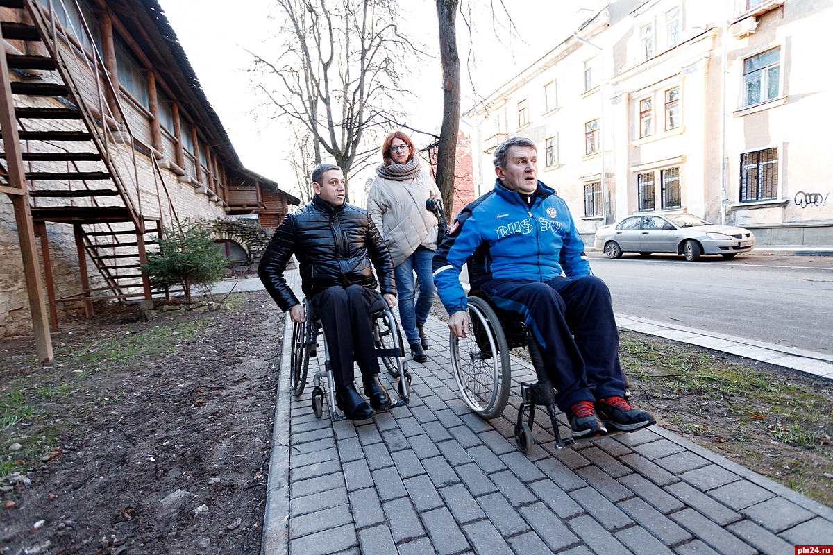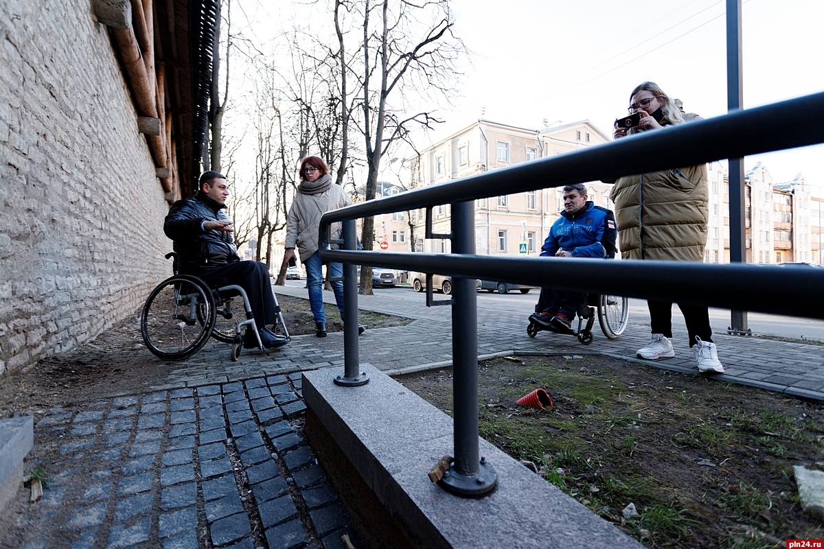 Псков старается не отставать от крупных городов. При входе в социальные учреждения, банки, аптеки и жилые дома оборудованы пандусы, а на улицах - специальные съезды, по которым человек на инвалидной коляске может без лишних усилий съехать с тротуара на проезжую часть. Также на некоторых улицах появились тактильные плитки, помогающие незрячим людям лучше ориентироваться в пространстве. И, тем не менее, как показал опрос, проведенный в группе Псковской Ленты Новостей «ВКонтакте», более 96% горожан считают, что Псков совершенно не приспособлен для проживания маломобильных групп населения.
