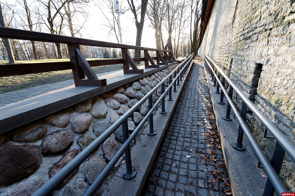 Сворачиваем на Свердлова - и глаз радуется, особенно когда вспоминаешь, как эта улица выглядела раньше: ямы, асфальт в трещинах, опасно нависающие над каменной стеной остатки деревянного настила, а по вечерам темень непроглядная. Но есть детали, на которые рядовой пскович внимания не обратит, а для человека с инвалидностью они имеют значение. По бокам пешеходной дорожки, которая тянется вдоль стены Окольного города, нет бордюров. Одно неловкое движение - и человек на коляске может съехать с дорожки на землю.