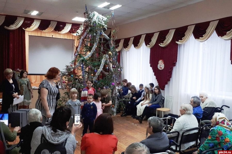 7 января, в праздник Рождества Христова, воспитанники воскресной школы храма Казанской иконы Божией Матери поселка Пушкинские Горы посетили Пушкиногорский дом ветеранов. Воспитанники приходской воскресной школы, по сложившейся доброй традиции, уже не первый год поздравляют ветеранов - вот и в этот раз ребята из младшей, средней и старшей групп подготовили большую концертную программу.