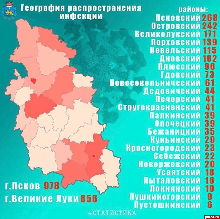 34 новых случая заболевания коронавирусом выявлено в Псковской области за прошедшие сутки. Всего в регионе COVID-19 заразились 3293 человека. Данные статистики обновил в своем инстаграм-аккаунте губернатор Михаил Ведерников.
