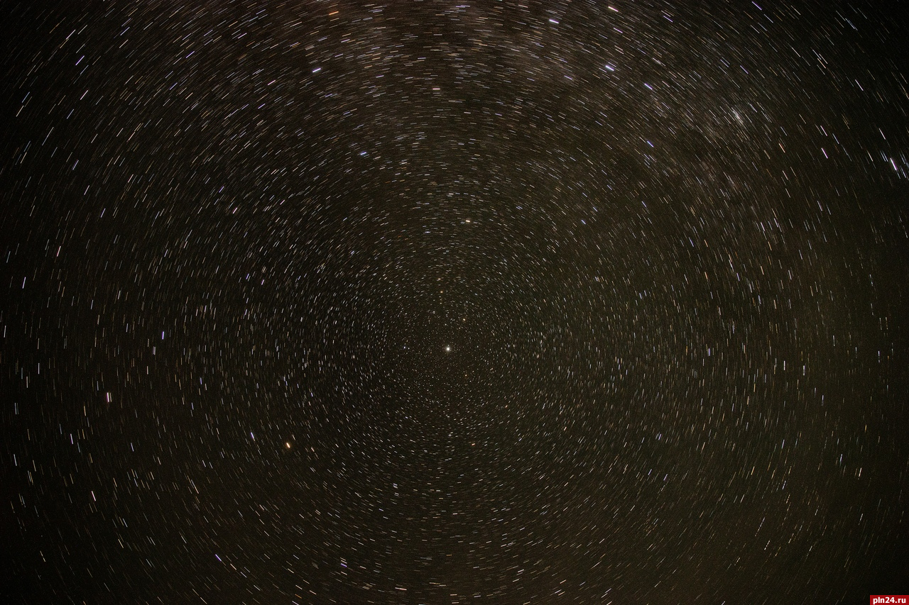Вращение звезд вокруг Полярной звезды (Полюса мира) запечатлели псковские астрономы. Об этом сообщается в группе любителей астрономии Псковской области в социальной сети «ВКонтакте».