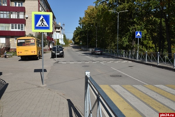 Предупреждающий об искусственной неровности знак отремонтировали возле Дома детского творчества на улице Карла Либкнехта в городе Острове. Ранее вандалы нарушили крепление дорожного знака, сообщили в администрации района.