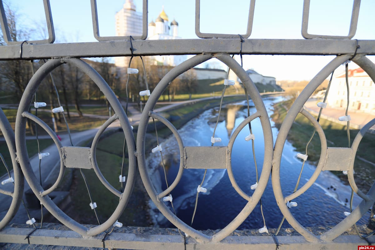 В Пскове восстановили новогоднюю иллюминацию на Советском мосту. Как сообщает корреспондент Псковской Ленты Новостей, обрыв произошел утром на стороне моста, обращенной к Финскому парку. Сейчас он устранен.