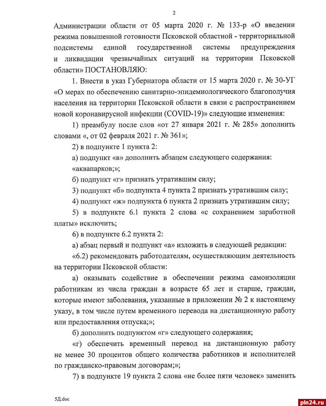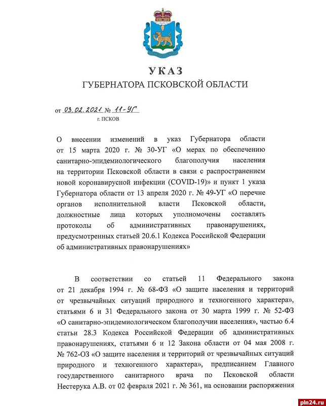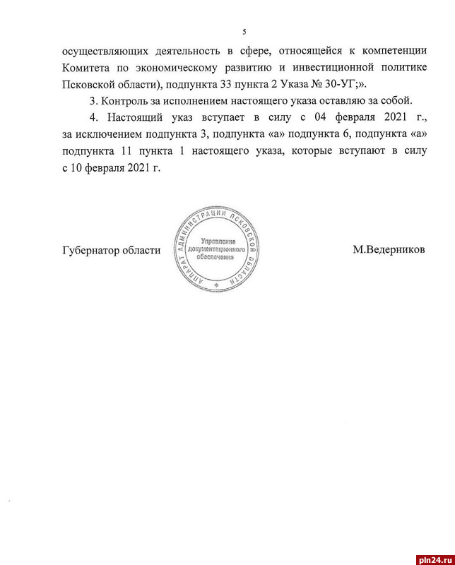 Соответствующие изменения в «антикоронавирусный» указ Михаил Ведерников подписал накануне, 3 февраля.