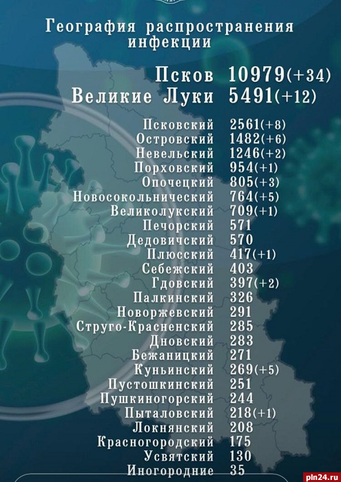 Всего в Псковской области проведено 256 336 исследований на коронавирус (780 за сутки). Подтверждено 30 335 случаев COVID-19. Выздоровели 18 918 человек (за сутки 37). Скончались за весь период 144 человека.