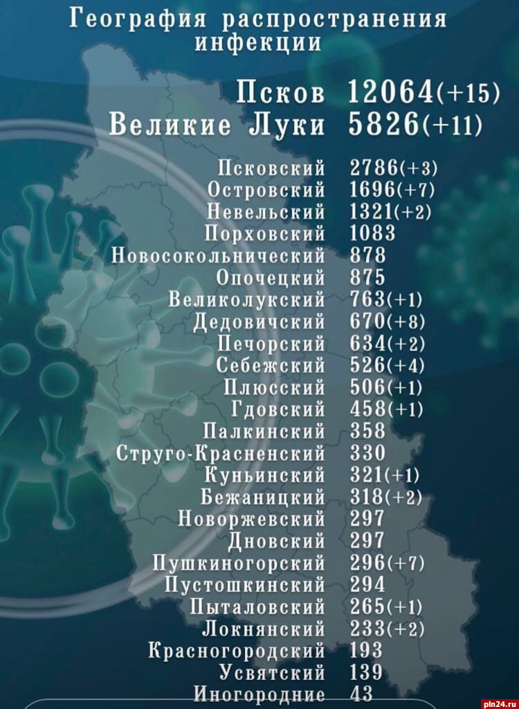 Еще 68 случаев коронавируса выявили в Псковской области за прошедшие сутки. При этом выздоровели 56 человек, сообщается в инстаграм-аккаунте губернатора Михаила Ведерникова.