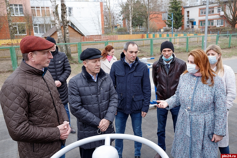 Ход благоустройства сквера «Аллея Ветеранов» и территории общего пользования у школы №24 в Пскове по программе «Формирование комфортной городской среды» проконтролировали сегодня, 23 апреля. Как передает корреспондент Псковской Ленты Новостей, проверку провели депутат Государственной Думы, секретарь регионального отделения партии «Единая Россия» Александр Козловский, вице-спикер Псковского областного Собрания, руководитель общественной приемной «Единой России» Юрий Сорокин, глава Пскова Елена Полонская и депутат городской Думы Константин Болотин.