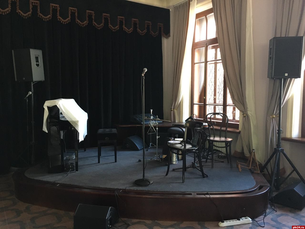 Добавим, что спектакль «Постой, паровоз!» пройдет в обновленном буфете. Дмитрий Месхиев продемонстрировал журналистам, как он теперь выглядит: сделан буфет наподобие ресторана псковской гостиницы «Лондон». Здесь установлены новые столики и стулья, красивые диваны с бархатной обивкой, массивный шкаф. Важный элемент — угловая сцена с музыкальными инструментами.