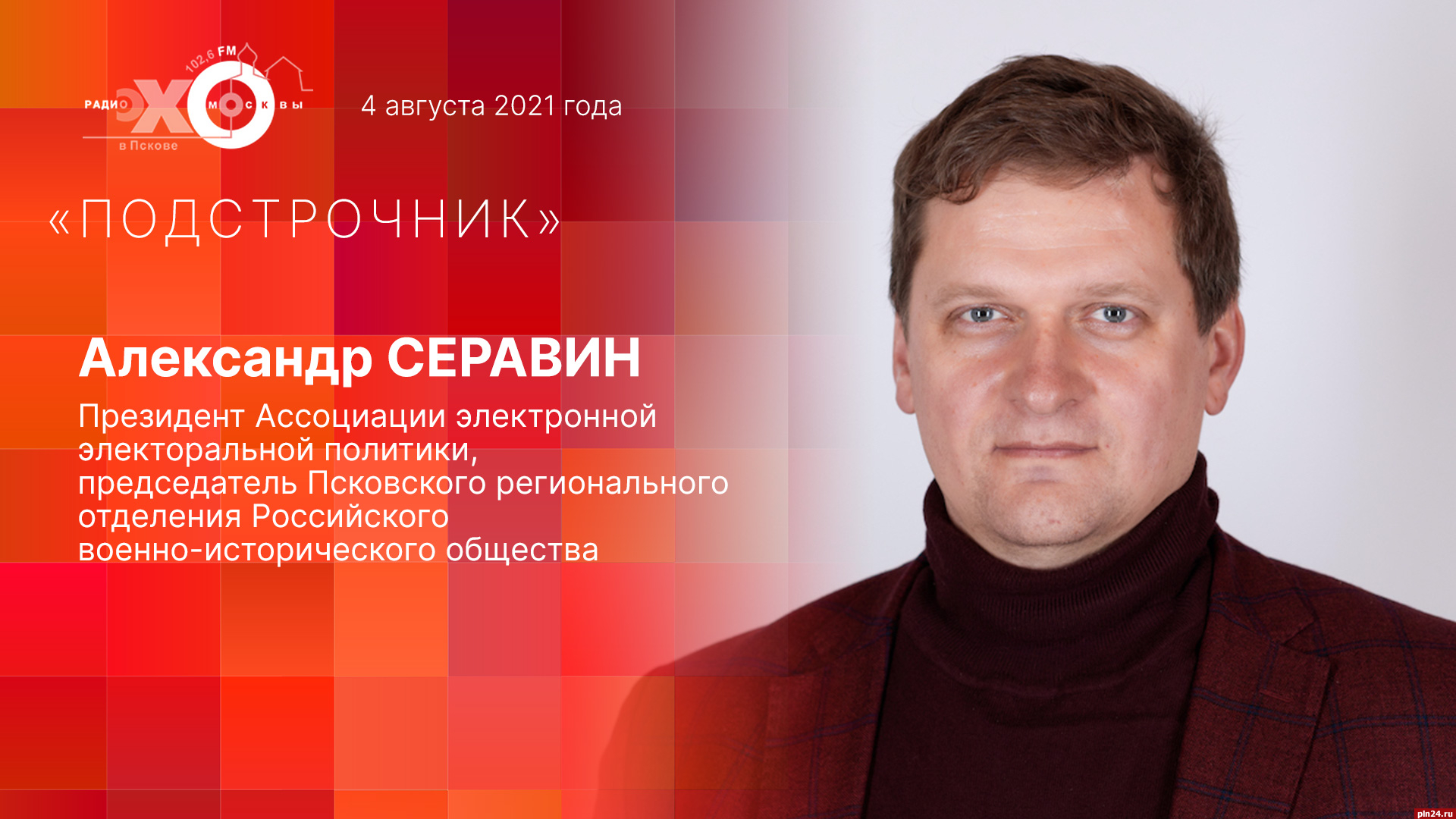 Предлагаем вашему вниманию видеотрансляцию программы «Подстрочник», которая в эти минуты начинается в прямом эфире радио «Эхо Москвы» в Пскове (102.6 FM). Гость студии – президент Ассоциации электронной электоральной политики, председатель Псковского регионального отделения Российского военно-исторического общества Александр Серавин.