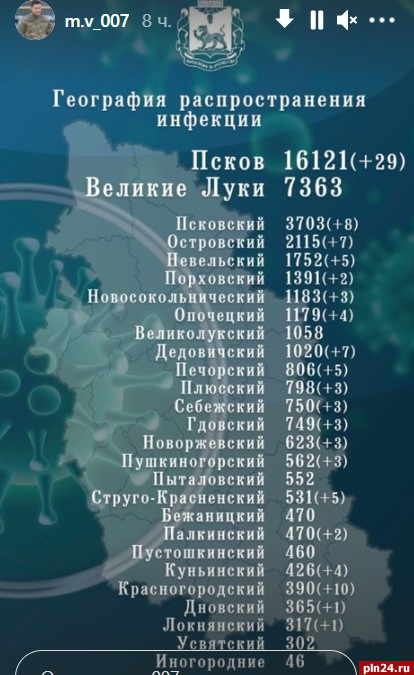 Кроме того, в Псковской области провели 660 исследования на коронавирус (всего 479 785).
