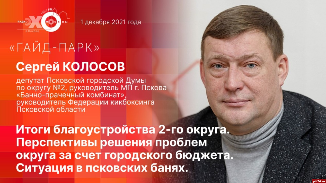 Предлагаем вашему вниманию видеотрансляцию программы «Гайд-парк», которая в эти минуты начинается в прямом эфире радио «Эхо Москвы» в Пскове (102.6 FM). Гость студии - депутат Псковской городской Думы по округу №2, руководитель муниципального предприятия города Пскова «Банно-прачечный комбинат» Сергей Колосов.