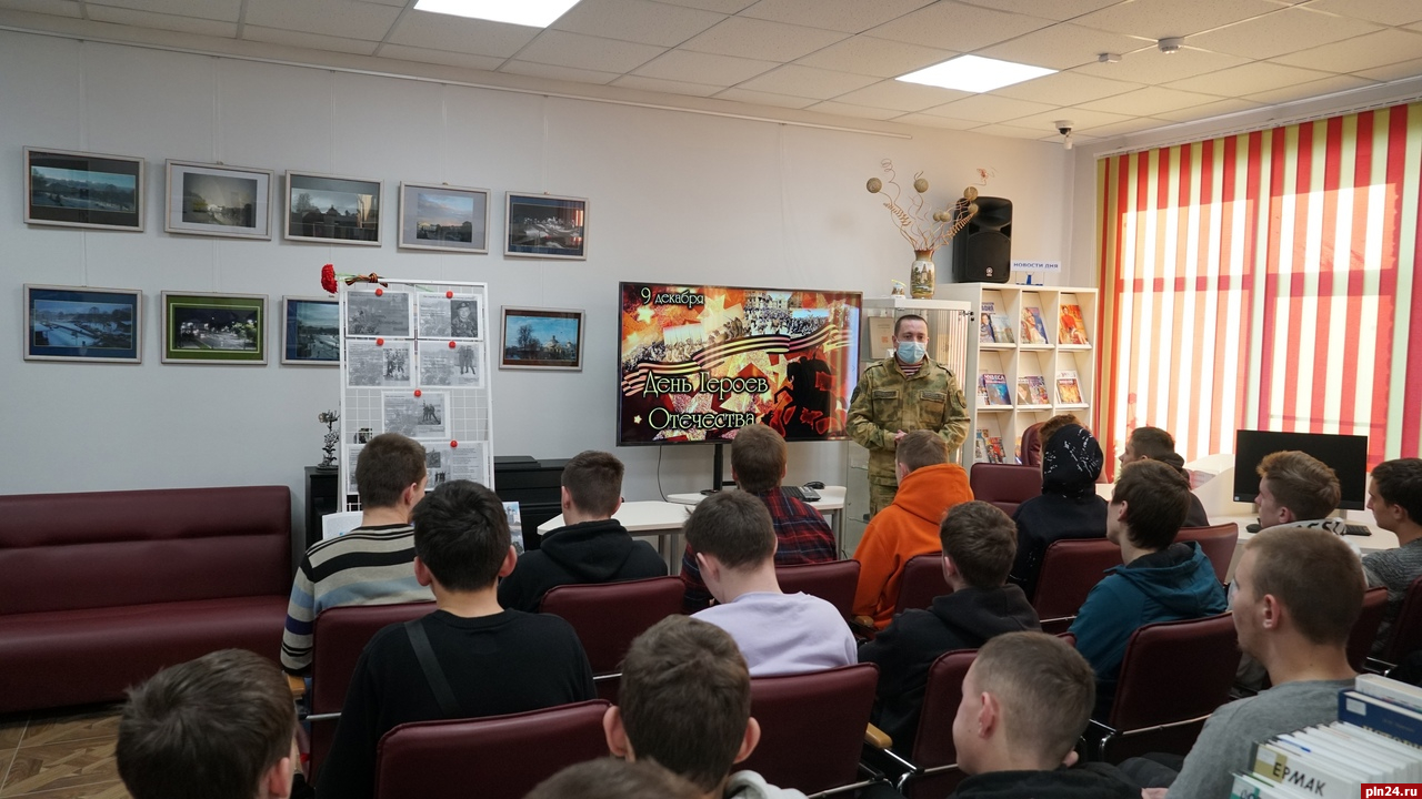 Накануне Дня Героев Отечества росгвардейцы провели встречу с учащимися политехнического колледжа в библиотеке микрорайона Любятово «Библиолюб». Об этом Псковской Ленте Новостей сообщили в пресс-службе регионального управления Росгвардии.