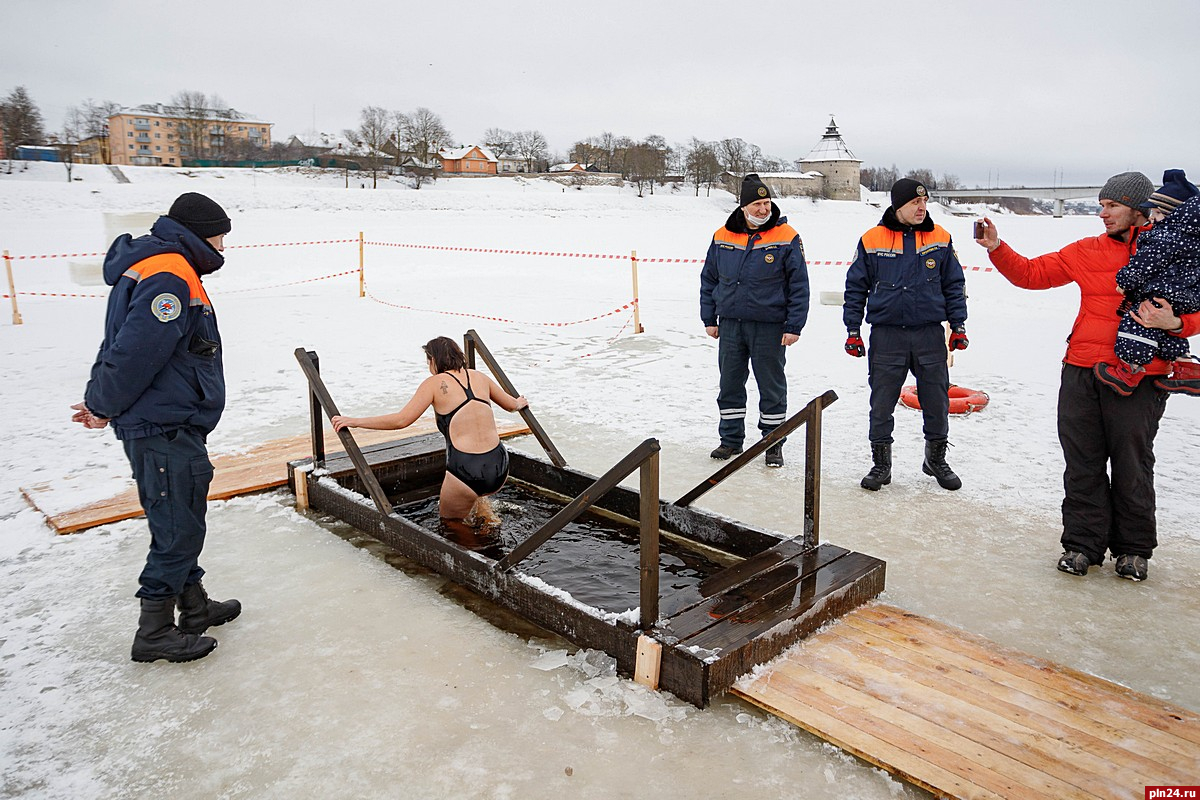 О том, как крещенские купания проходят в Пскове, смотрите в фоторепортаже Вадима Боченкова.