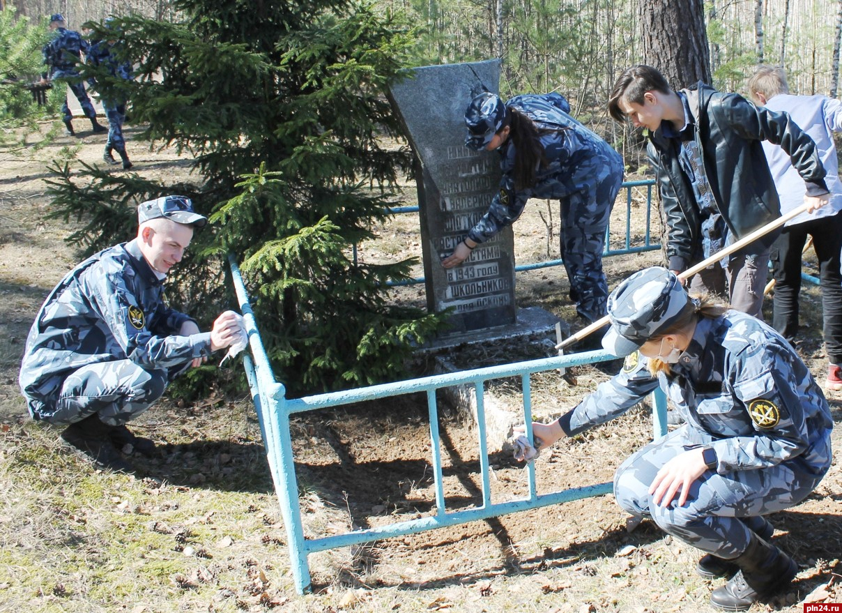 Курсанты Псковского филиала академии ФСИН России и учащиеся средней школы № 17 города Пскова имени Валерия и Анатолия Молотковых привели в порядок памятные захоронения в Псковском районе, где в годы Великой Отечественной войны находилась территория салотопки. Об этом Псковской Ленте Новостей сообщили в пресс-службе ведомственного учебного заведения.